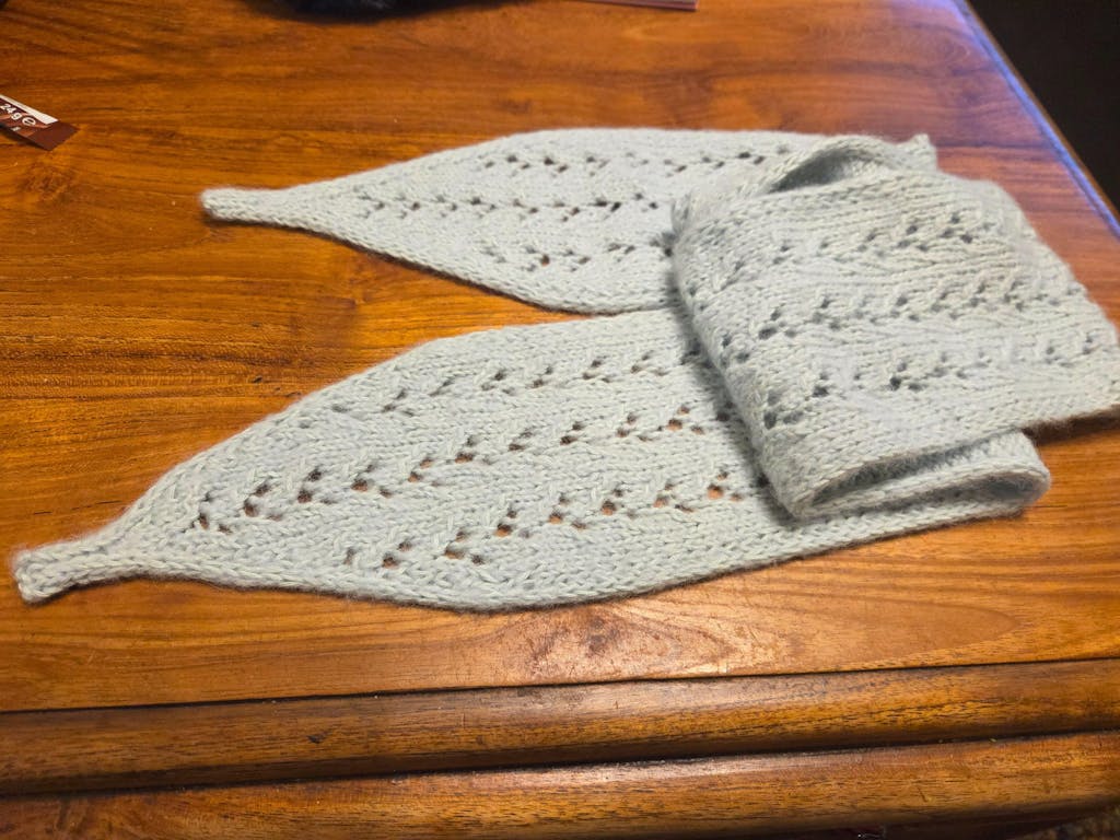 Zusätzlich habe ich das Muster an beiden Seiten erweitert, da mir der Schal für mich und meine Statur zu schmal erschien. Hat alles geklappt. Ich trage ihn bereits und er gefällt auch meinem Umfeld 😊.