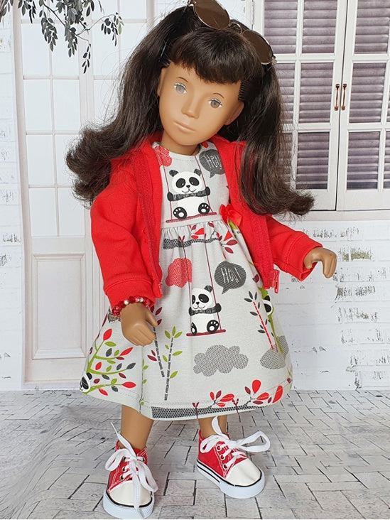 wie es kommen musste, schnell war der Virus auf mich über gesprungen. Ich sah so viele wunderschöne Kleider und wie traumhaft die Puppen gekleidet werden. Schnell holte ich meine Nähmaschine, die ebenfalls im Winterschlaf war, hervor und richtete mir mein Nähzimmer wieder ein. Seither habe ich bereits einige neue Kleider für meine Sasha’s genäht. Da ich nicht alle selber behalten kann und soviele Ideen im Kopf habe, verkaufe ich auch das eine oder andere Kleidungstück.